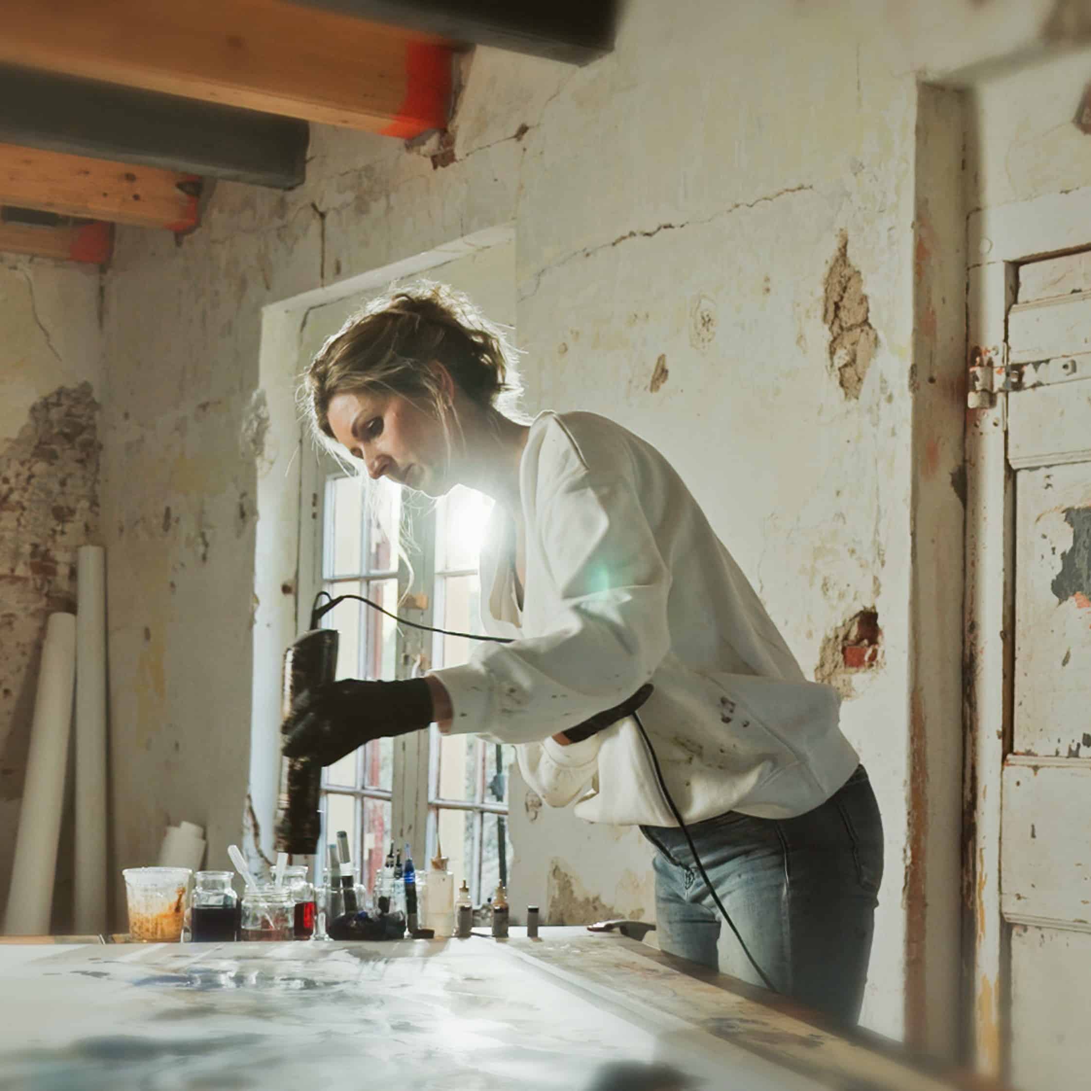 Wat begon met traditionele schilderkunst, heeft zich ontwikkeld tot een volledig unieke beeldtaal waarbij de penselen zijn verruild voor een gecontroleerde toepassing van luchtstromen.