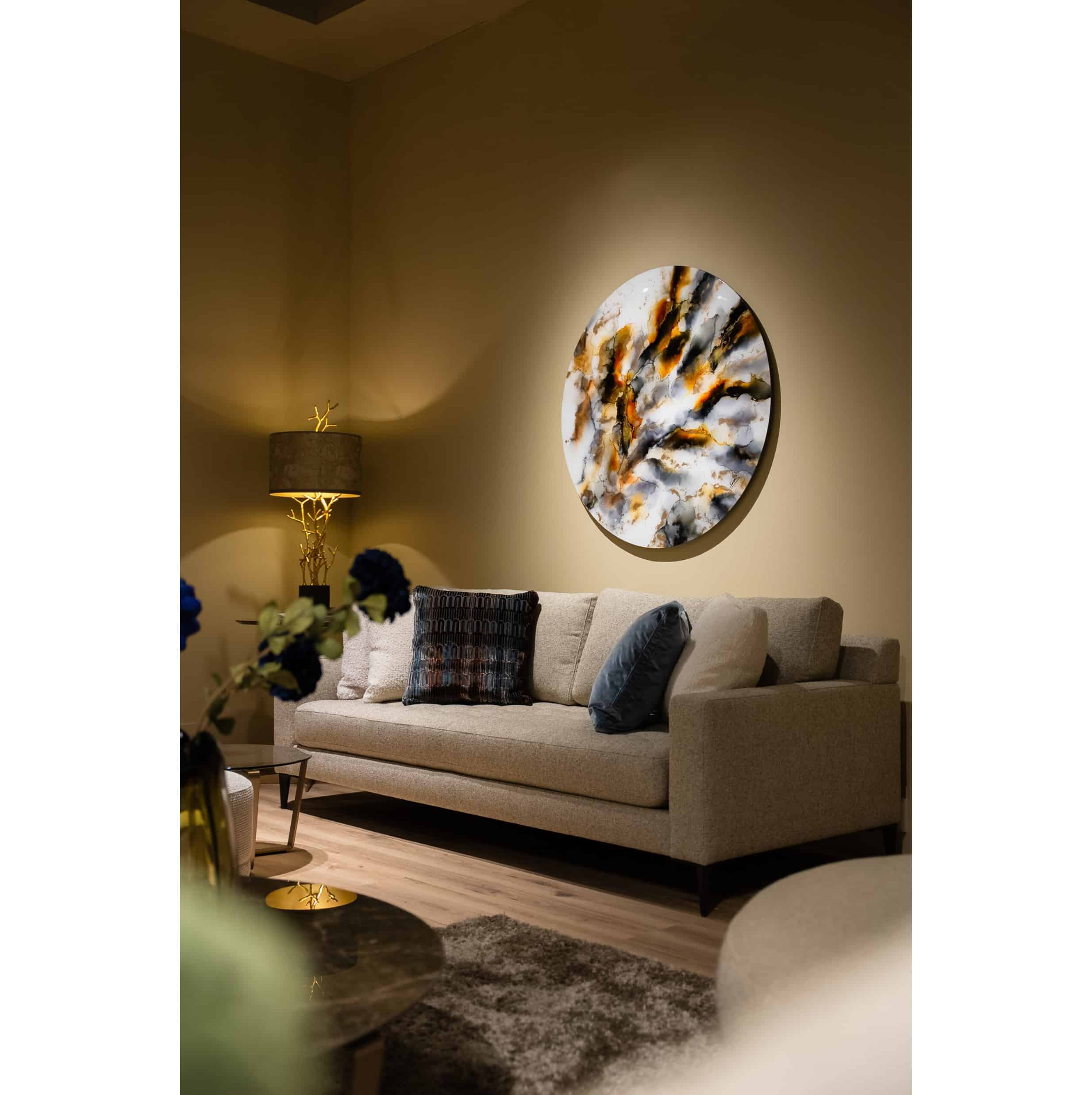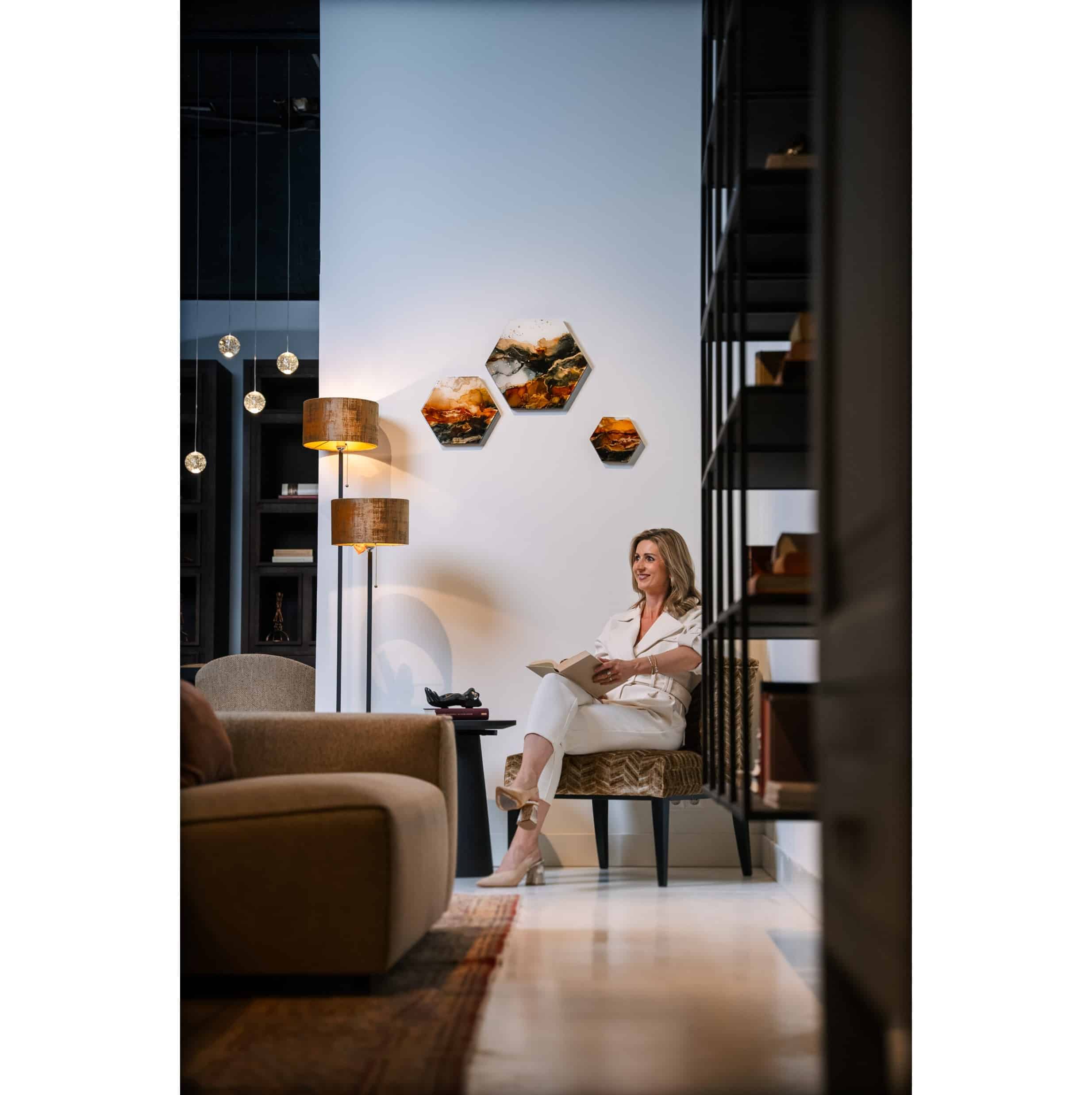 Het werk van Stephanie van der Beek staat bekend om de ronde en organische vormen, levendige tinten en het gouden licht. Elk schilderij is volstrekt uniek en brengt door de artistiek levendige patronen en sterke uitstraling een bijzondere sfeer in je interieur.