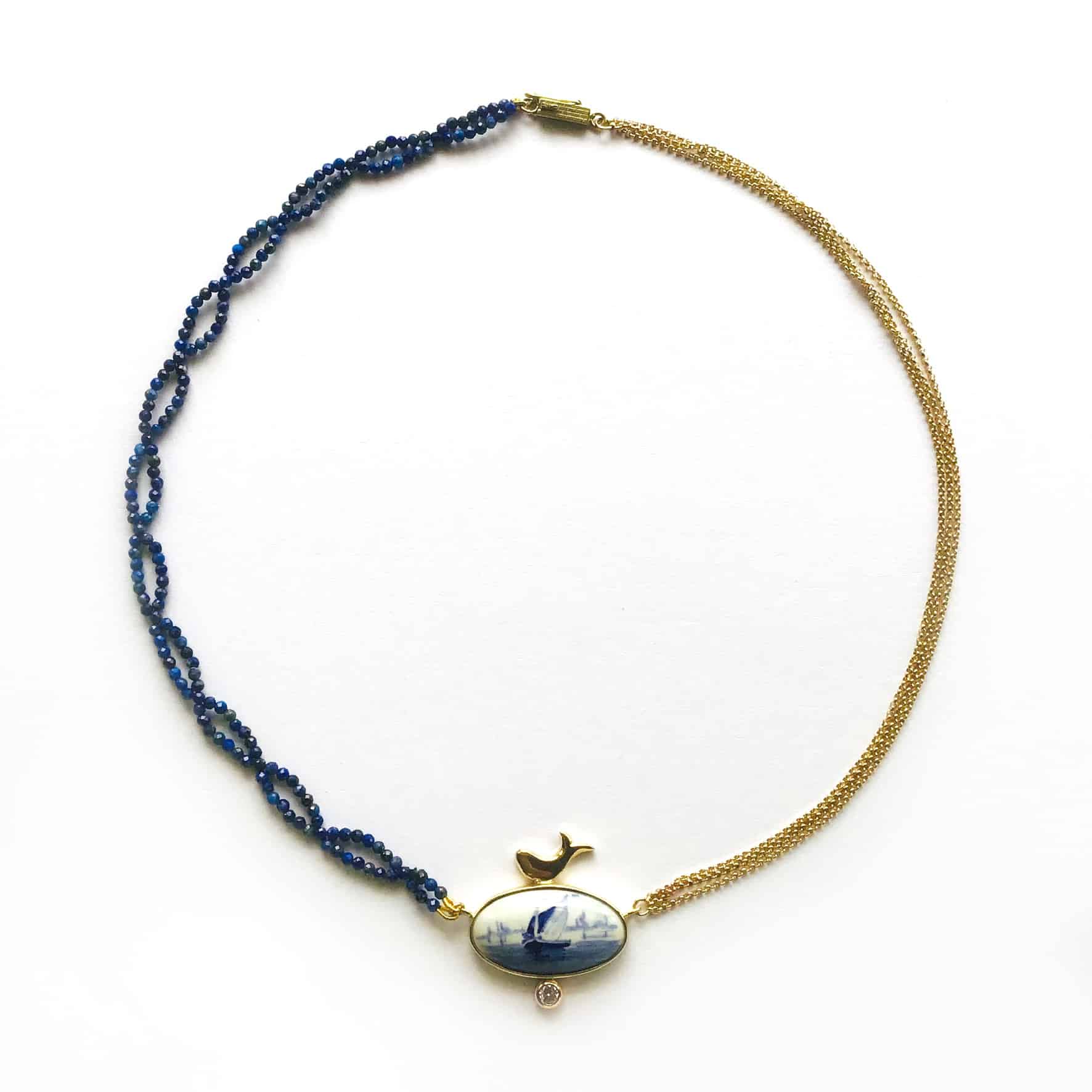 | Materiaal | parels lapis lazuli, goud, diamantje, Delfts Blauw |
