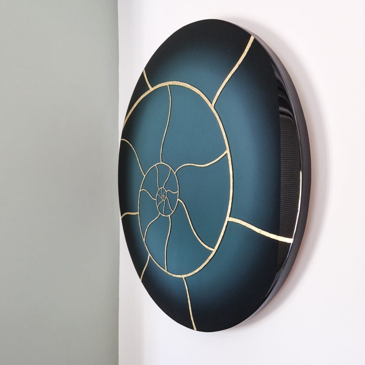 | Materiaal | Acrylverf, bladgoud, epoxy, goudkleurige aluminium rand |