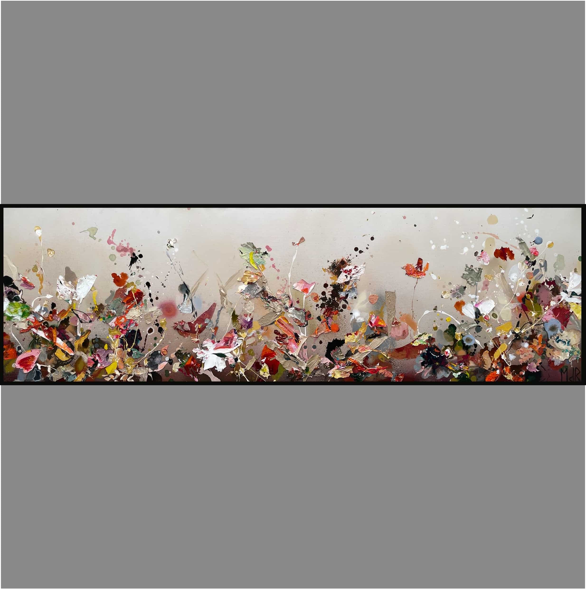 Materiaalacrylverf met paletstukken op linnen – aluminium frame
