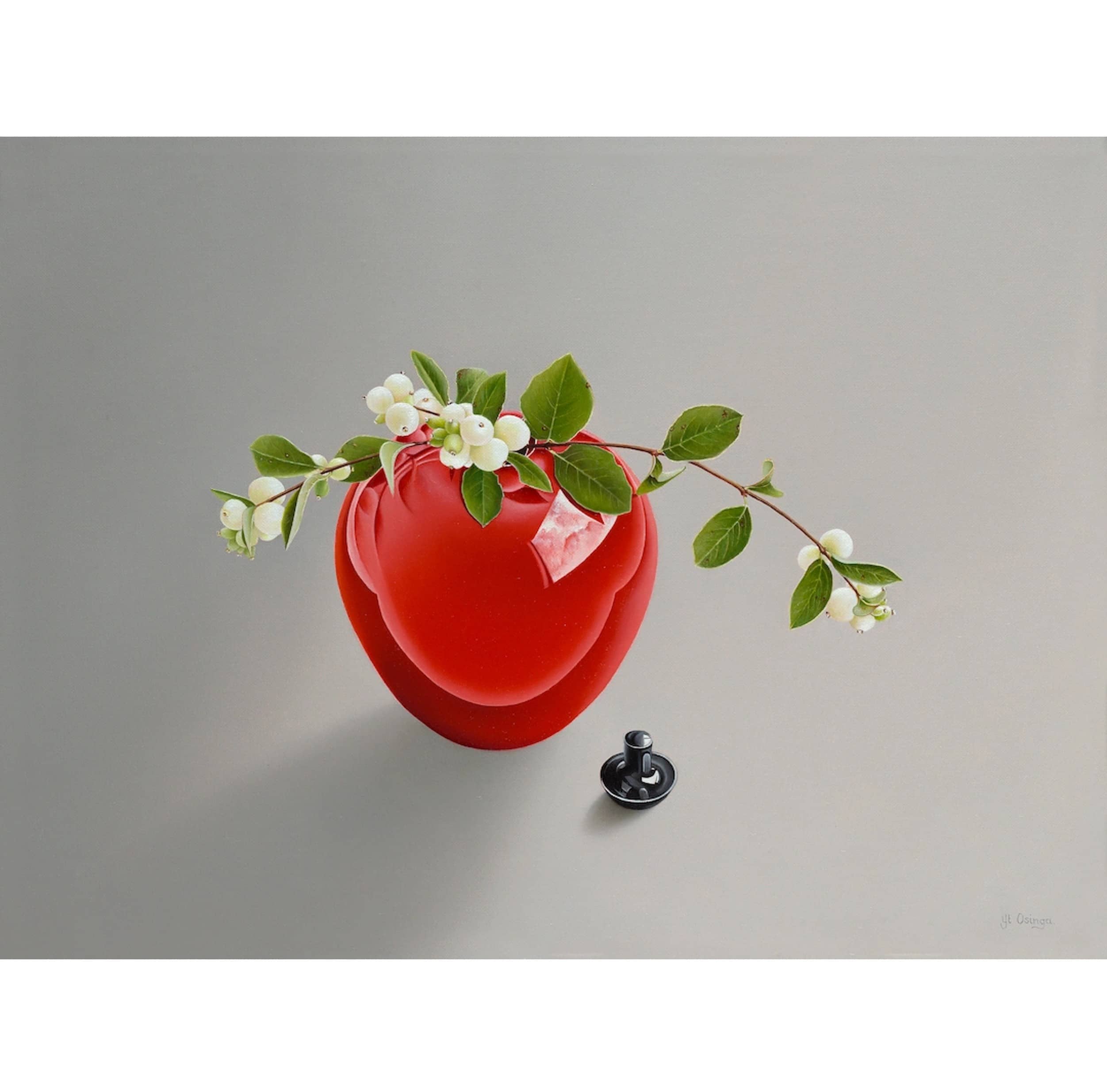 Rode vaas met sneeuwbes – VERKOCHT – Yt Osinga