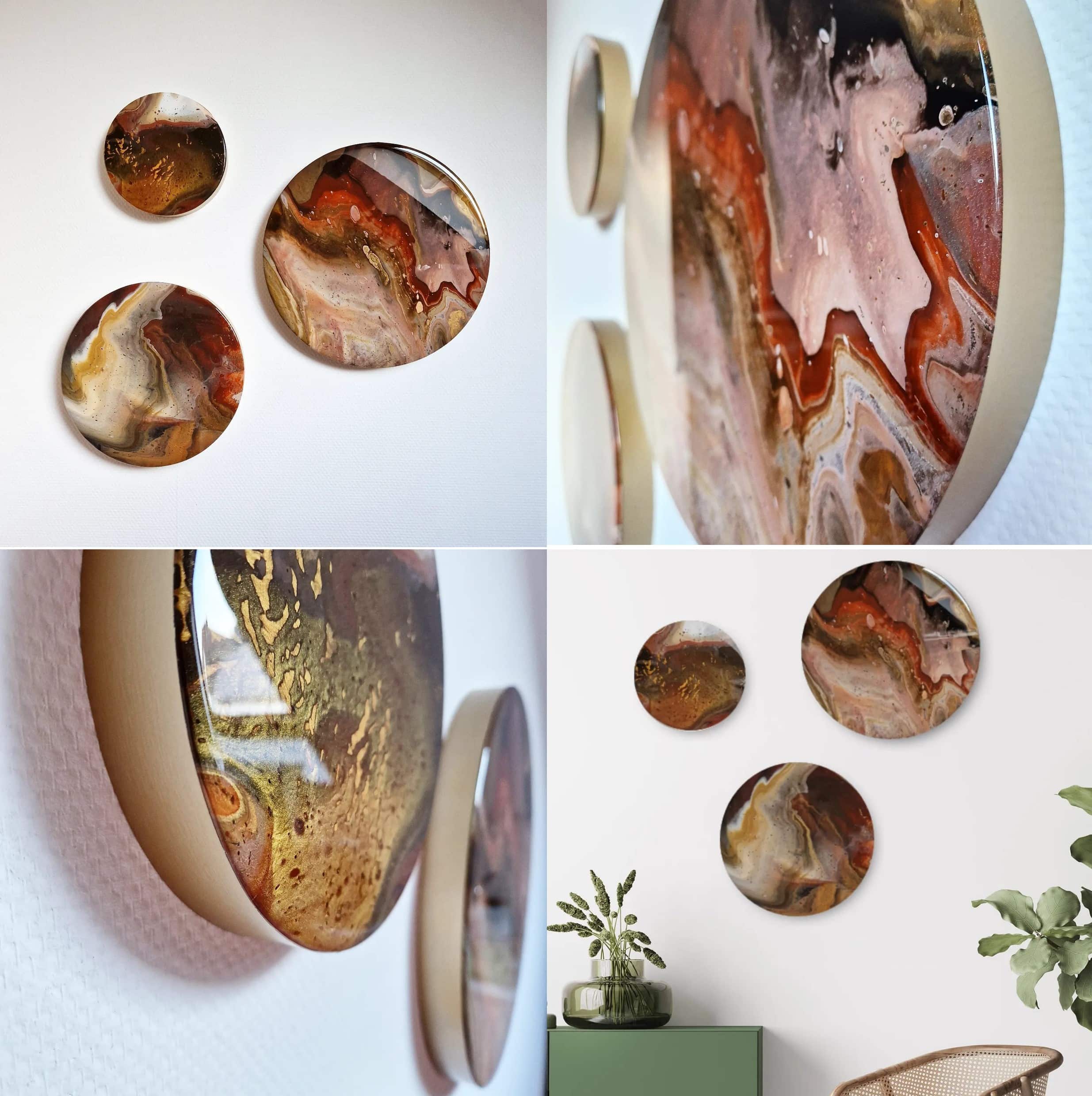 | Materiaal | Resin art: acrylverf + epoxy + goudkleurige aluminium rand |