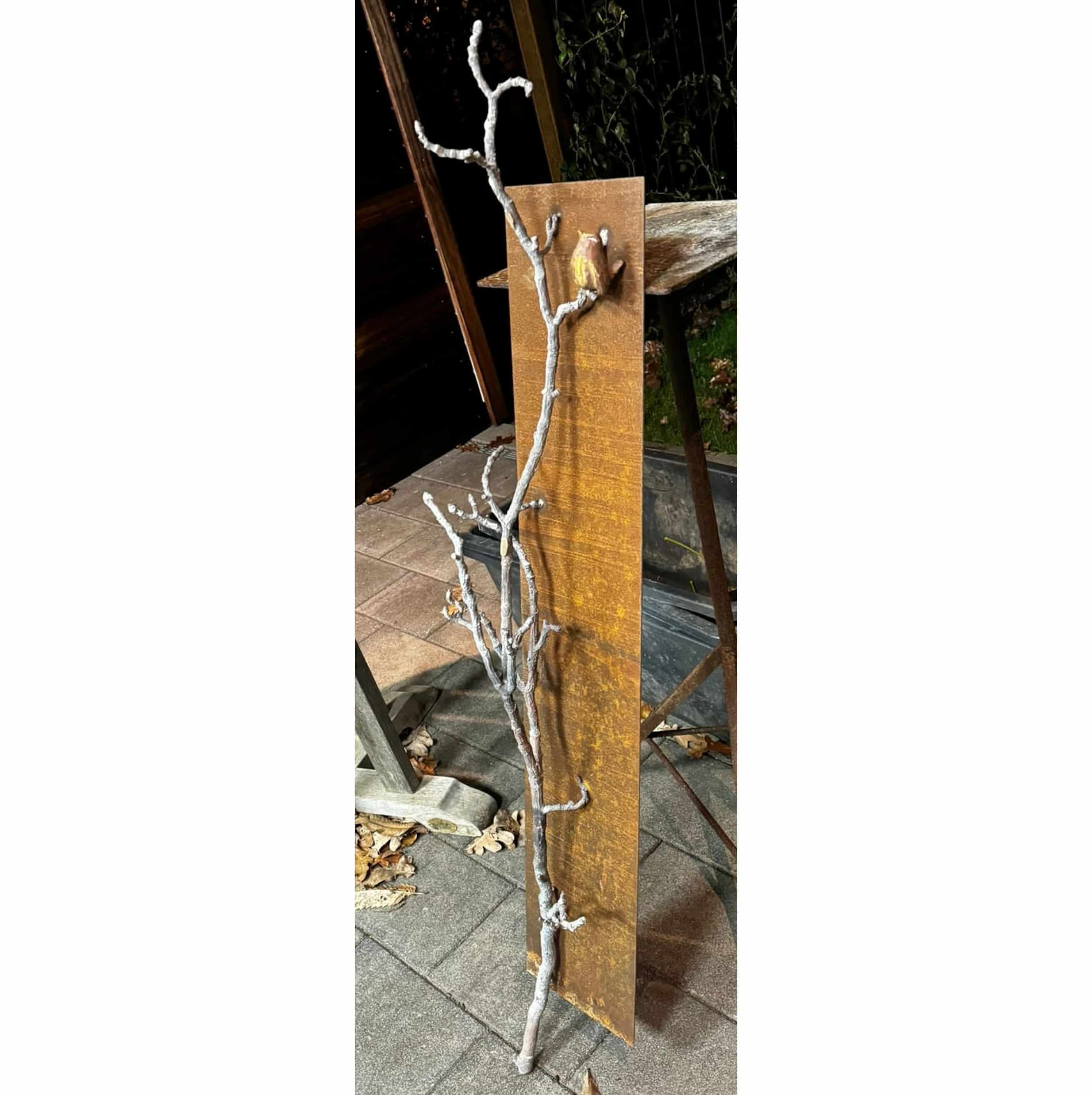 Winterkoning op tak op cortenstaal – Chris Gadiot