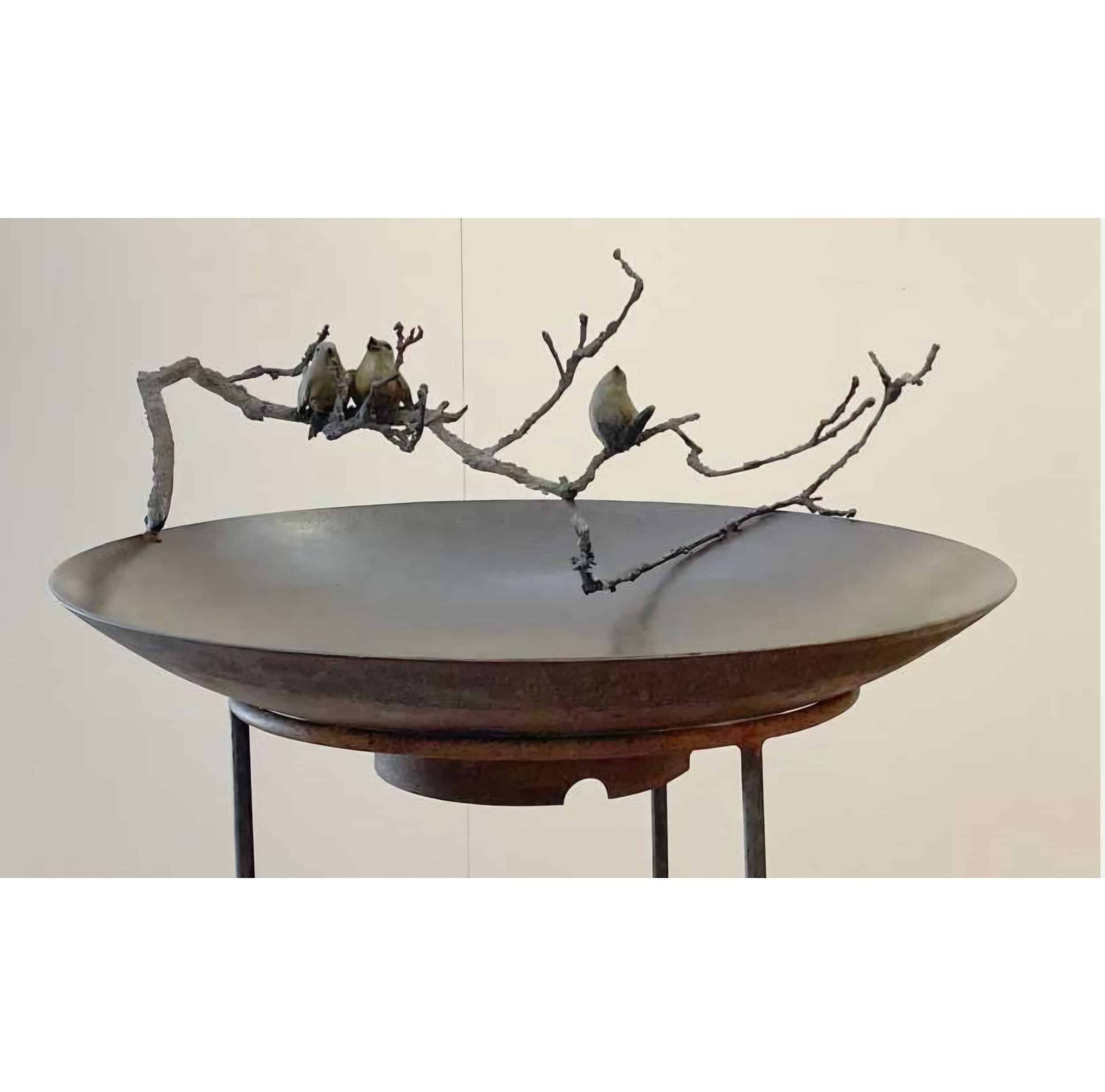 | Materiaal | bronzen tak met bronzen vogeltjes op waterschaal van cortenstaal | ||