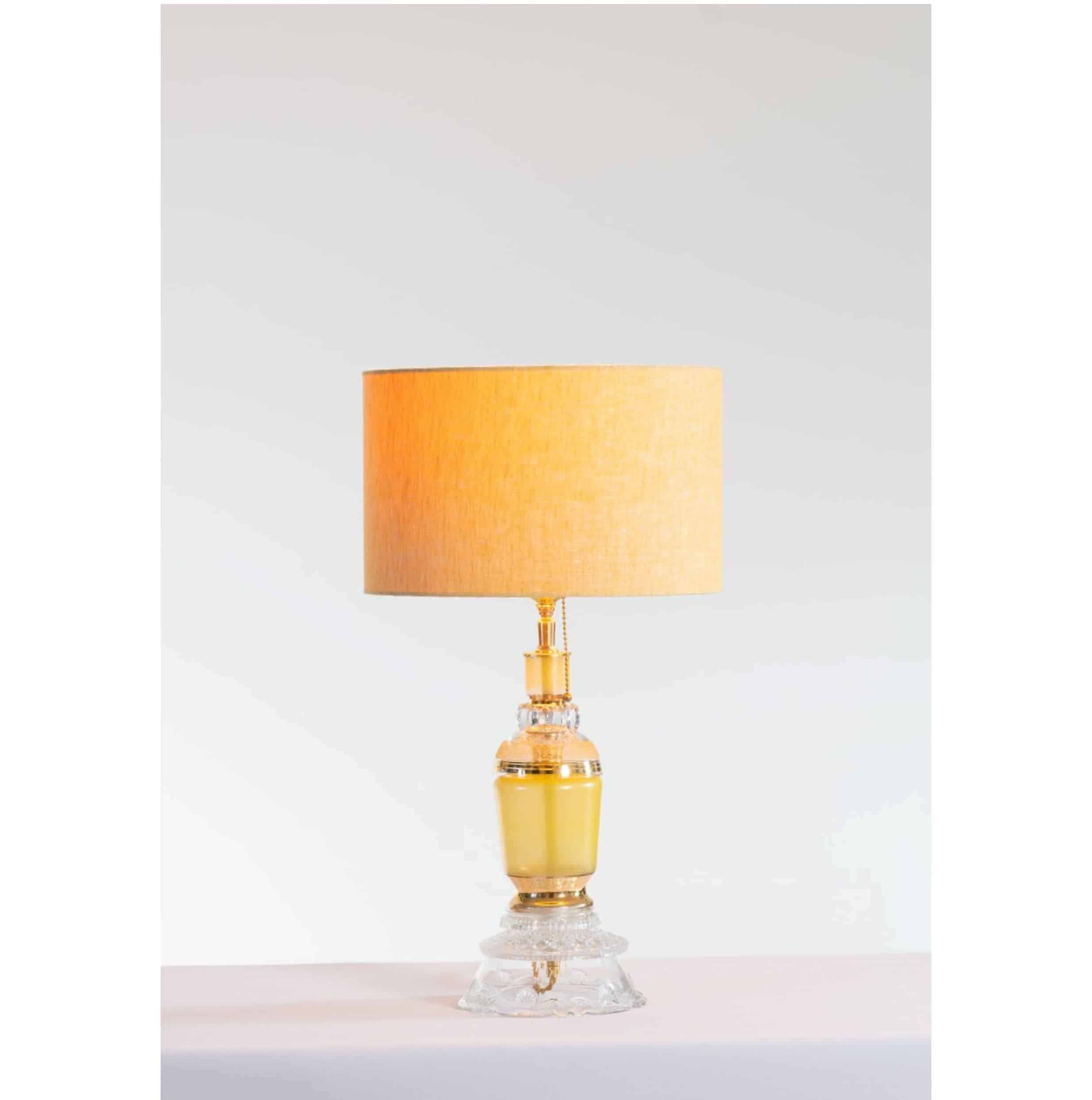 | Materiaal | Vintage glas / zelfgemaakte lampenkappen met stof / snoertjes in kleur |